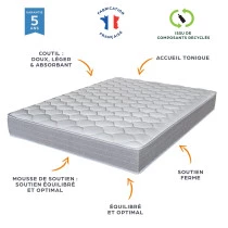 Couchage : 140x190 cm - Hauteur matelas : 18 cm - Garanti 3 ans